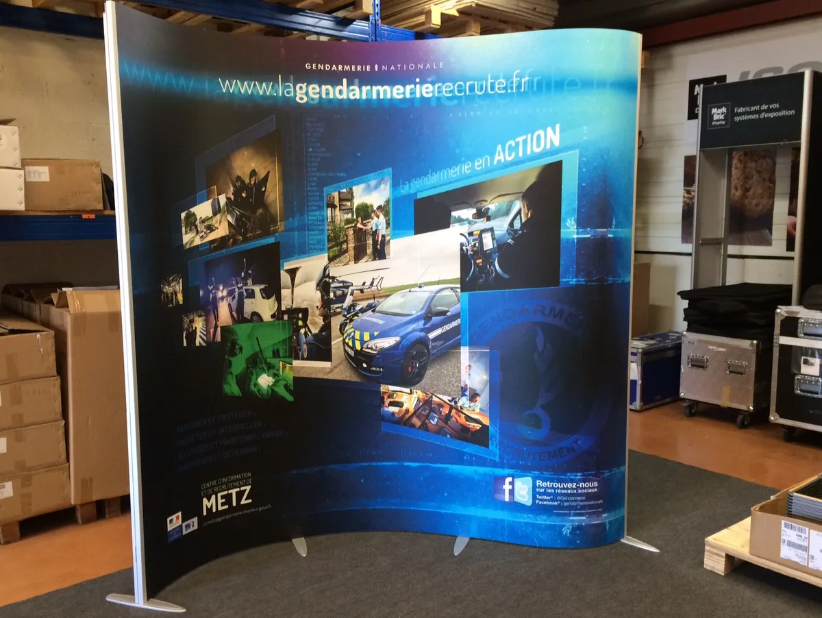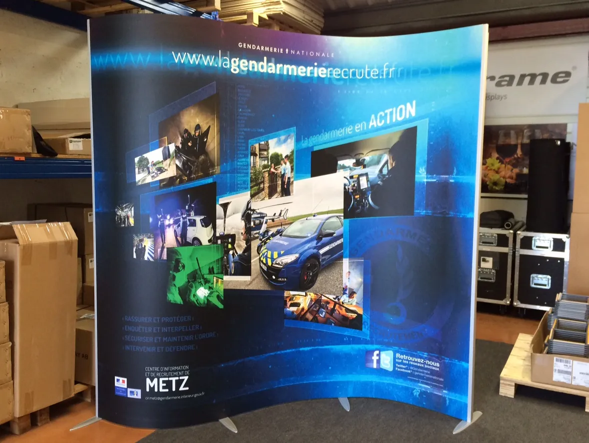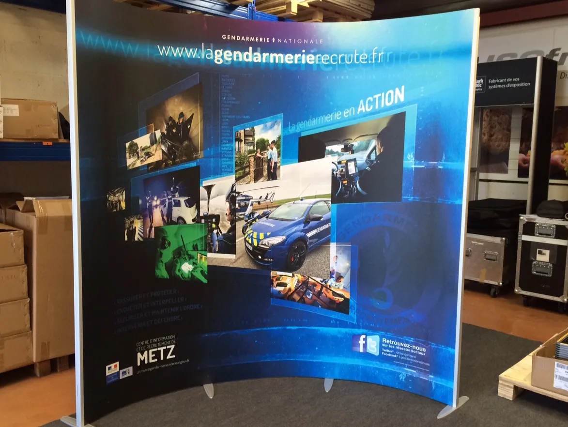 Cette approche sur mesure a permis à la Gendarmerie de disposer d’un stand polyvalent, esthétique et facilement transportable, tout en garantissant une mise en valeur optimale de leurs missions et de leur image publique. Grâce à une charte graphique cohérente, des supports visuels impactants et une mise en place rapide, le résultat final conjugue efficacité logistique et présence visuelle forte.